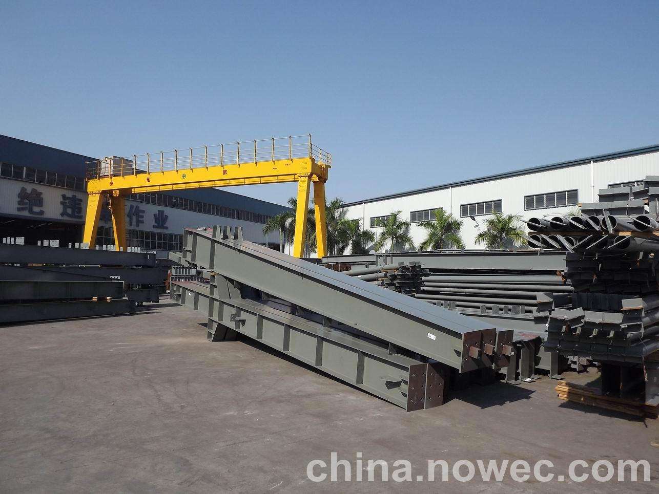 条状单元一般沿长跨方向分割,其宽度约为1~3个网格,其长度为l2或l2/2(l2为短跨跨距)。块状单元一般沿永康网架平面纵横向分割成矩形或正方形单元。每个单元的重量以现有起重机能胜任为准。条(块)与条(块)之间可以直接拼装,也可空一网格在高空拼装。由于条(块)状单元是在地面拼装,因而高空作业量较高空散装法大为减少,拼装支架也减少很多,又能充分利用现有起重设备,故较经济。这种安装方法适用于分割后网架的钢度和受力状况改变较小的各类中小型网架,如两向正交正放四角锥、正放抽空四角锥等网架。